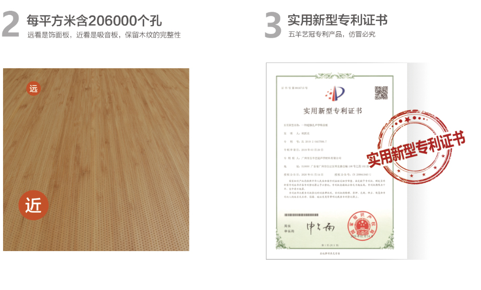 吸聲結構:五羊藝冠超微孔吸音板(V2.2/0.5-12/15型)+50mm厚玻璃棉板+100mm空腔,測試數據來自華南理工大學建筑聲學實驗室。