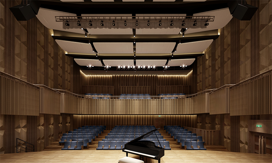 使用功能:以中小型音樂會為主。。聲學設計原則以自然聲設計為主,要求廳堂建成后具備較高的混響感、空間感。