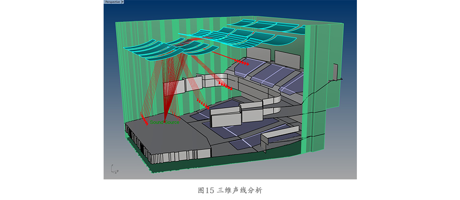 利用計算機參數化設計軟件,對觀眾廳體型進一步分析,聲線分析可涵括二維層次開始到三維聲學模型層次,與傳統CAD聲線作圖法相比,具有高效便利,精細確切,分辨率高,形象生動等優點。